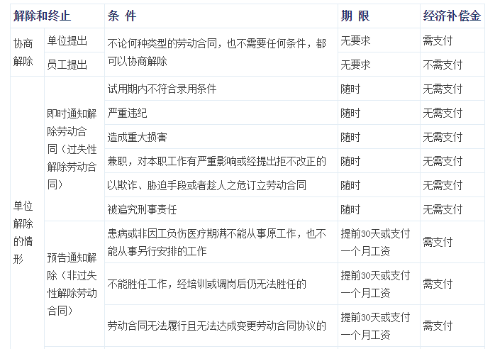 2、劳动合同解除的情形及赔偿一览表3、赔偿金的法律依据用人单位违法解除或者终止劳动合同的,应当按照经济补偿标准的二倍向劳动者支付赔偿金。